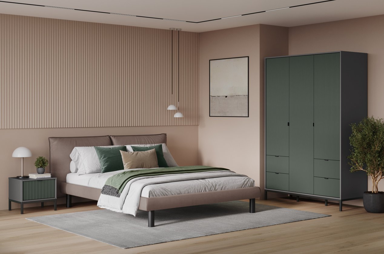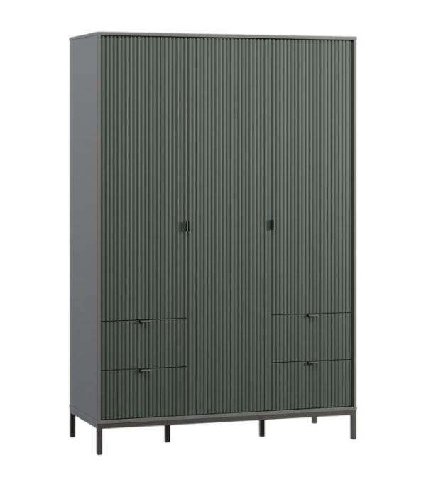 Tủ Quần Áo Travis Xanh Đậm Rừng Nhiệt Đới – 3 kết hợp vẻ hiện đại tinh tế với tông màu tự nhiên, mang đến không gian phòng ngủ gọn gàng, sang trọng và đầy sức sống. Sự hòa quyện giữa gam xám chì trầm ổn và cánh lam xanh đậm rừng nhiệt đới tạo điểm nhấn thanh lịch, vừa hiện đại vừa gần gũi với thiên nhiên, giúp căn phòng trở nên ấm áp nhưng không kém phần sang trọng.