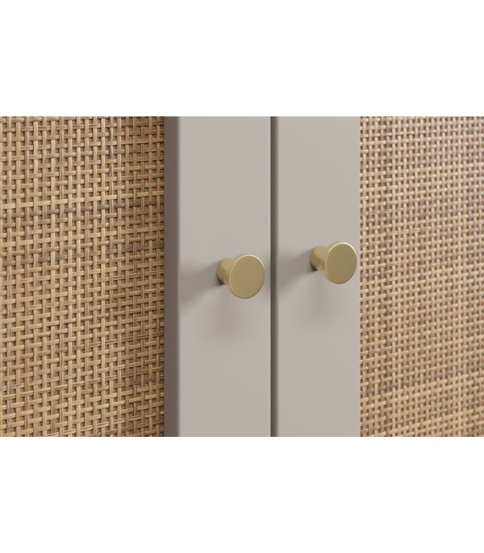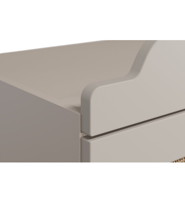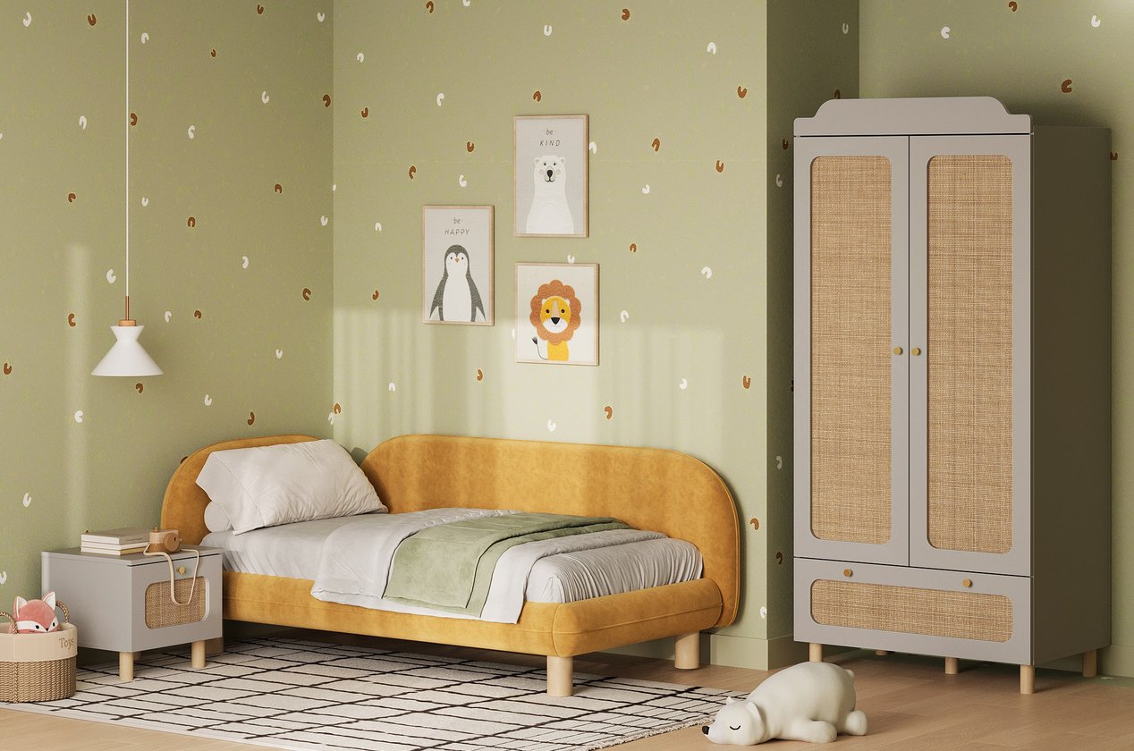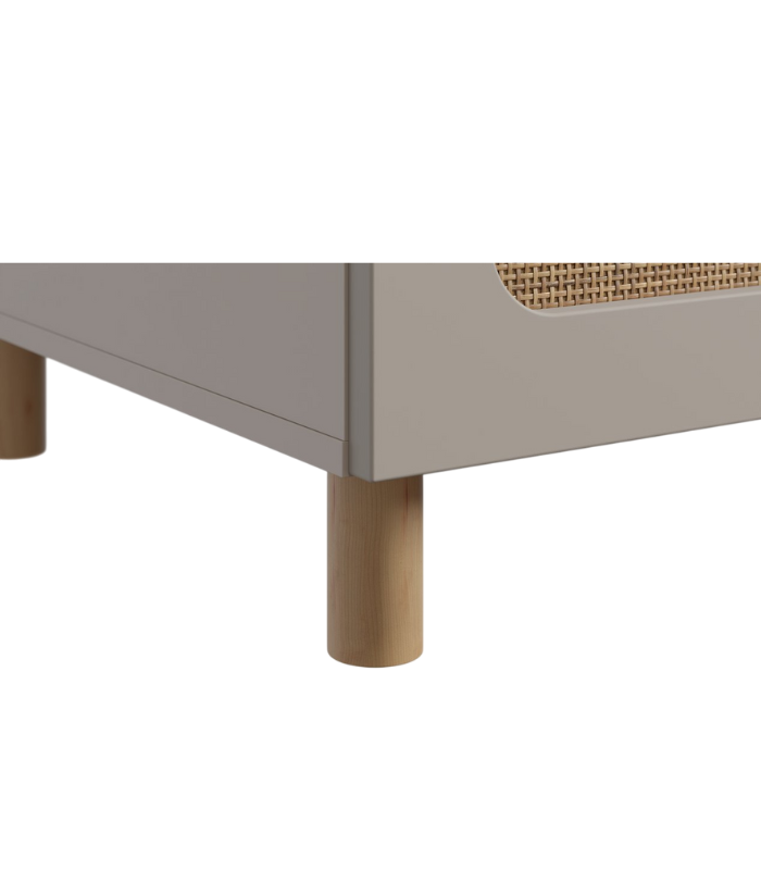 Cánh tủ giả mây tạo điểm nhấn tinh tế và mềm mại, mang lại vẻ tự nhiên và gần gũi. Tủ làm từ MDF phủ melamine, bền màu và dễ vệ sinh, an toàn cho trẻ nhỏ.