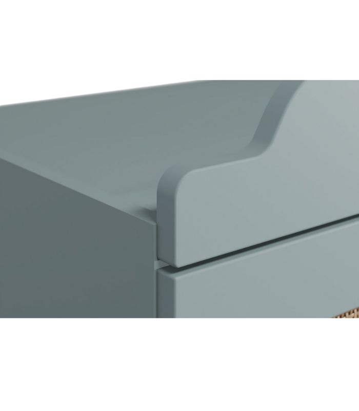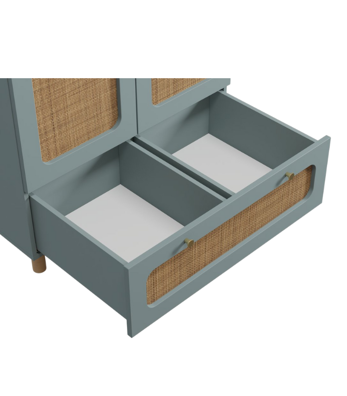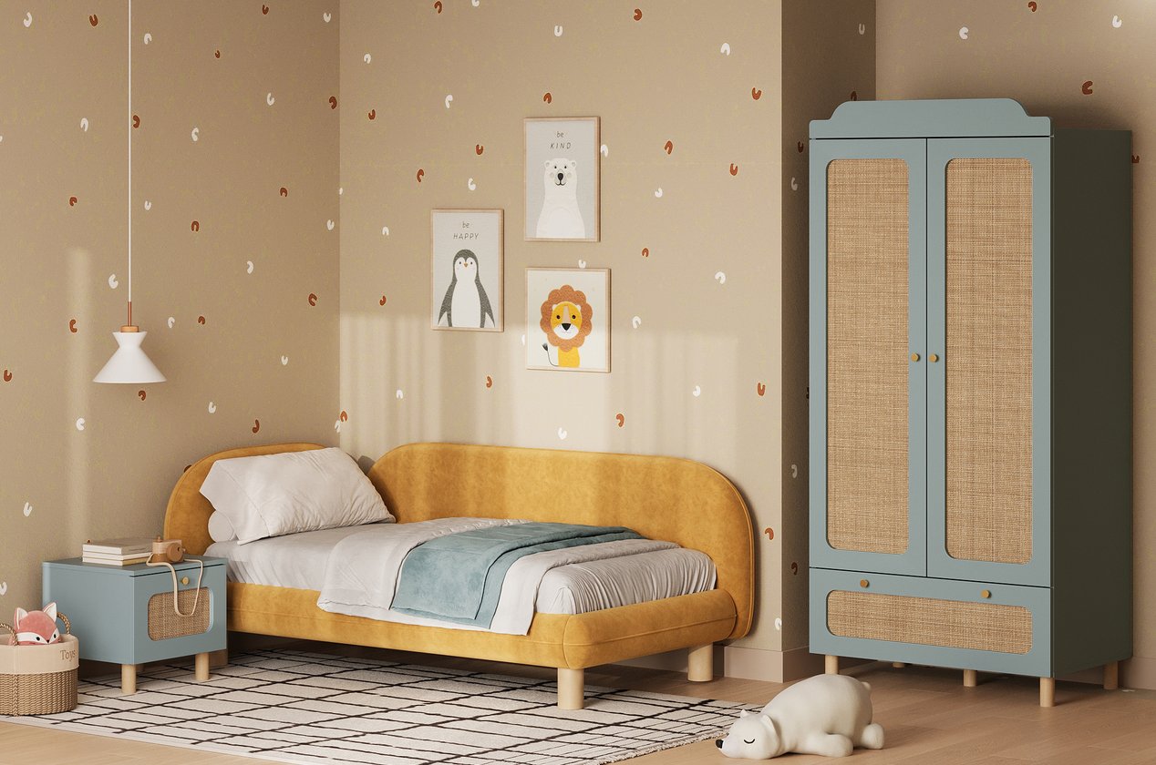 Cánh tủ giả mây tạo điểm nhấn mềm mại và tinh tế, đồng thời mang đến vẻ tự nhiên cho không gian. Sản phẩm được làm từ MDF phủ melamine, bền màu và dễ vệ sinh, an toàn cho trẻ nhỏ.
