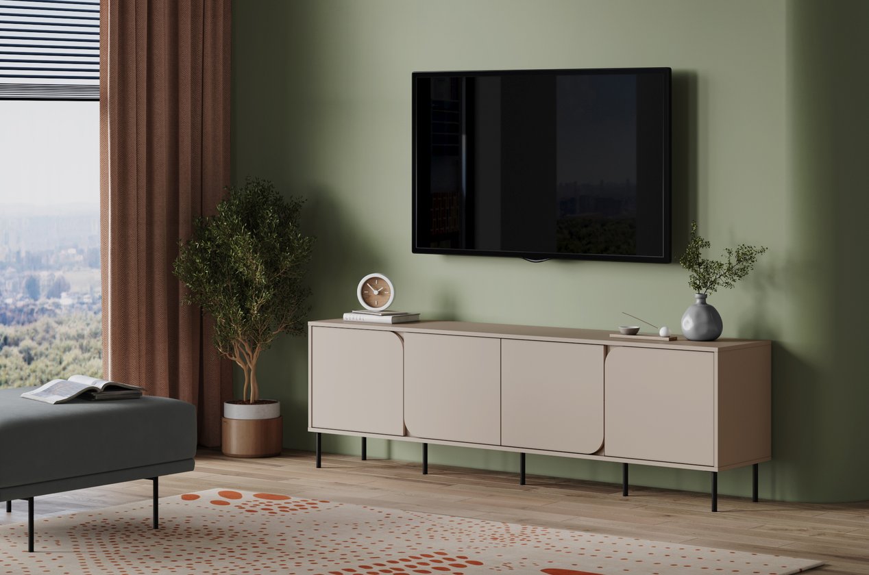 Xét về công năng, tủ sở hữu hệ thống khoang chứa rộng giúp bạn thoải mái lưu trữ thiết bị giải trí, điều khiển, sách ảnh hay phụ kiện decor. Chiều dài 200 cm giúp tạo không gian đặt TV và khung ảnh cực kỳ thoải mái. Thiết kế tủ đóng vai trò che chắn dây điện, giúp khu vực giải trí luôn ngăn nắp. Chân đứng cao đảm bảo độ thoáng và hỗ trợ việc vệ sinh sàn dễ dàng. Các cánh tủ đóng mở mượt mà tạo trải nghiệm sử dụng tiện lợi mỗi ngày.