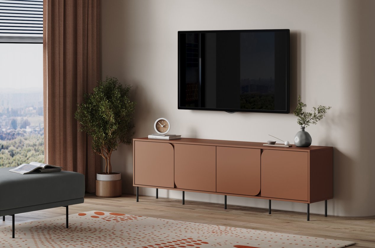 Tủ Tivi Blest Nâu Đỏ Đất Nung – 3 gây ấn tượng mạnh với dáng vẻ tối giản nhưng vẫn toát lên sự tinh tế và hiện đại. Sắc nâu đỏ đất nung mang đến cảm giác ấm áp, mộc mạc và dễ hòa hợp với nhiều phong cách nội thất khác nhau.