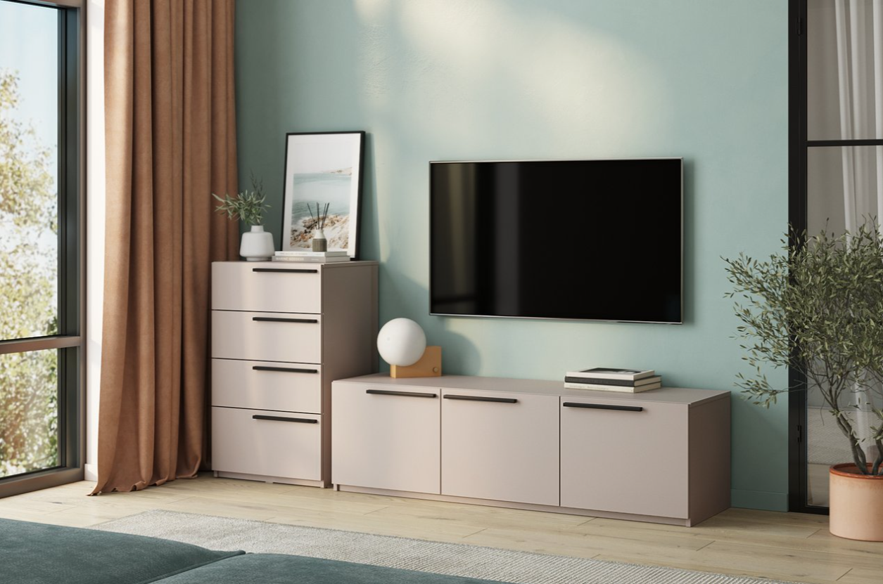 Mặt tủ rộng, chắc chắn, phù hợp đặt TV hoặc đồ trang trí. Thiết kế gọn đẹp, mang hơi hướng hiện đại pha chút ấm cúng. Tủ Tivi Kimball Cà Phê Sữa-4 là lựa chọn tuyệt vời cho khách yêu phong cách nhẹ nhàng – ấm áp – tinh tế.