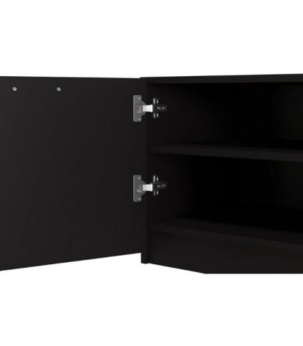 Cánh tủ sơn PU 1 mặt cho bề mặt bóng nhẹ, mịn và rất dễ vệ sinh. Thiết kế gồm 3 cánh tủ, mỗi cánh chia 2 ngăn giúp lưu trữ khoa học và gọn gàng. Từng khoang chứa đều rộng rãi, phù hợp cất điều khiển, thiết bị điện tử và vật dụng đa năng. Sắc đen tạo chiều sâu thị giác, giúp không gian thêm cá tính và sang trọng. Bề mặt melamine chống bám bụi, giữ tủ luôn sạch sẽ chỉ với một lần lau nhẹ. Bản lề chất lượng cao giúp đóng mở êm, tăng trải nghiệm sử dụng.