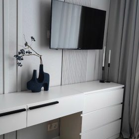 Tủ tivi thiết kế hợp lý, để đồ thoải mái. Đội thi công làm nhanh và chuyên nghiệp.
