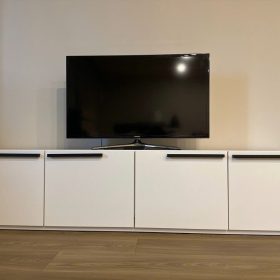 Tủ tivi nhìn rất sang và tự nhiên. Thi công nhanh, không ảnh hưởng sinh hoạt.