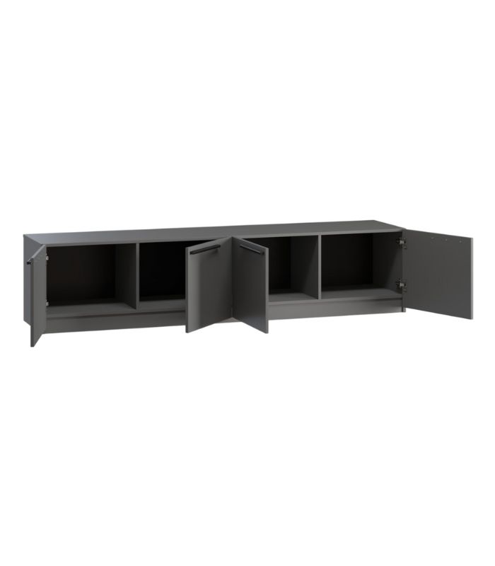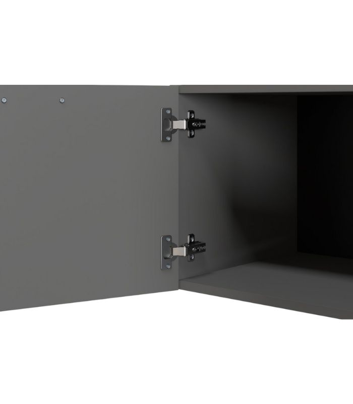 Tủ Tivi Kimball Xám Chì-2 mang tông xám thời thượng, tạo sự tinh tế cho khu vực phòng khách. Sản phẩm sử dụng MDF phủ melamine chống ẩm giúp tủ hạn chế bị phồng rộp trong môi trường ẩm.