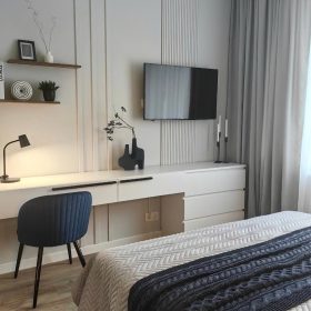 Tủ tivi nhìn rất hiện đại và sang. Thi công nhanh, không ảnh hưởng sinh hoạt.