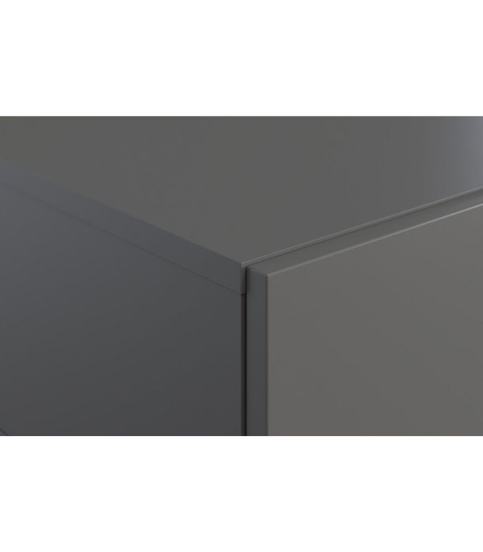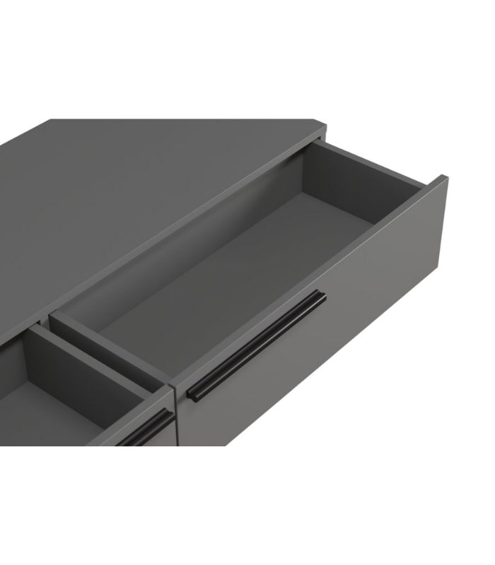 Cánh tủ sơn PU 1 mặt, đem lại độ mịn và khả năng chống bám bụi tốt. Thiết kế 2 ngăn kéo giúp lưu trữ gọn gàng từ phụ kiện TV đến các vật dụng nhỏ. Ray trượt êm ái, giúp ngăn kéo hoạt động nhẹ nhàng và bền bỉ. Gam xám chì dễ phối với đa dạng phong cách nội thất hiện đại.