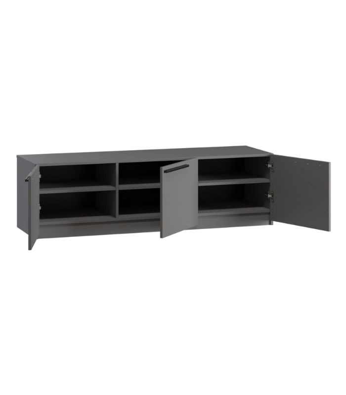 Cánh tủ sơn PU 1 mặt tạo bề mặt đẹp, chống bám bẩn tốt. Thiết kế 3 cánh – mỗi cánh có 2 ngăn giúp tăng tối đa không gian lưu trữ. Khoang tủ rộng, phù hợp để thiết bị điện tử, sách hoặc phụ kiện TV. Màu xám chì dễ phối đồ, mang lại cảm giác thanh lịch và sạch sẽ. Bề mặt melamine chống trầy xước nhẹ, bền màu theo thời gian. Bản lề hoạt động mượt, cho thao tác đóng mở nhẹ nhàng.
