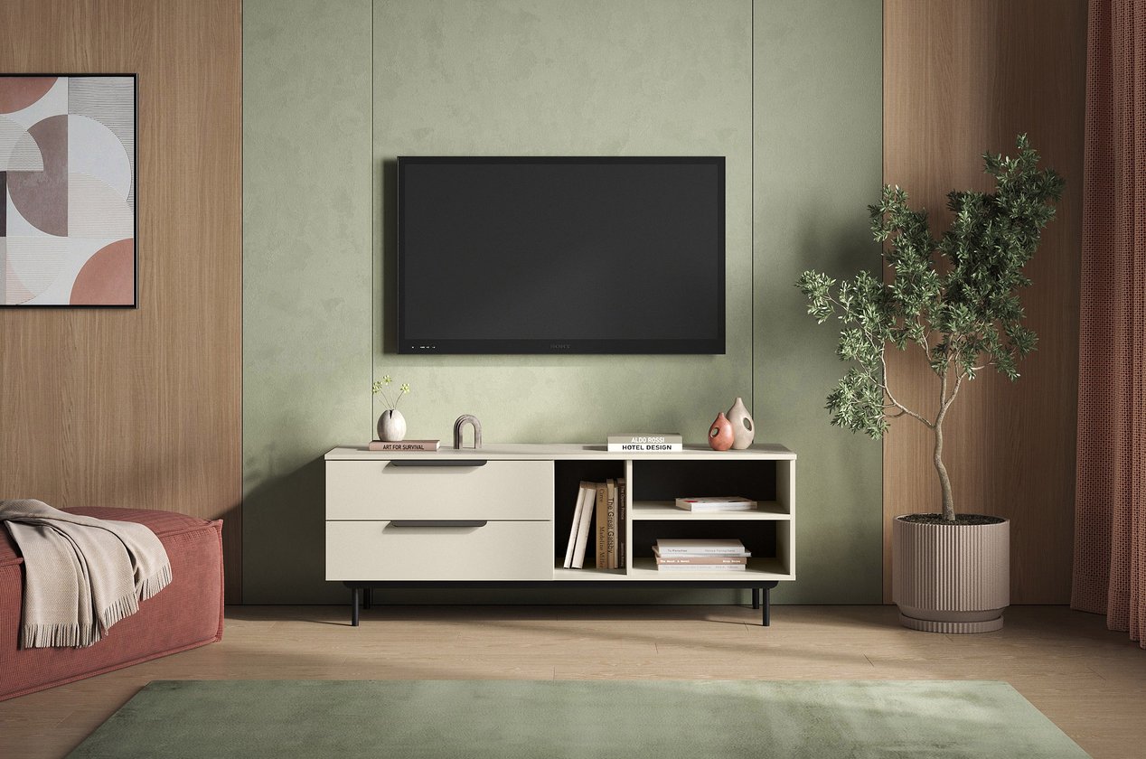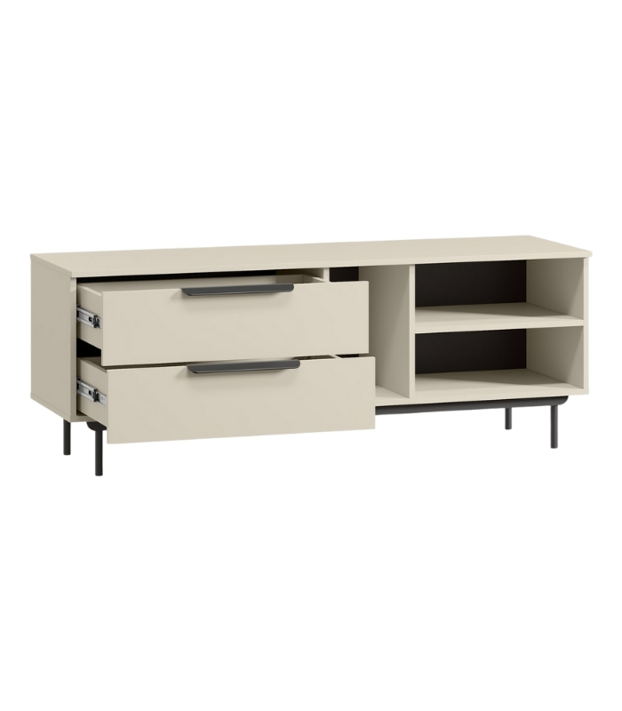 Thiết kế gồm 2 ngăn kéo + 2 hộc mở cho phép lưu trữ linh hoạt, giảm bớt sự bừa bộn của dây điện và thiết bị giải trí. Tủ cao 55cm giúp TV được đặt ở tầm nhìn thoải mái, đồng thời tăng vẻ hài hòa cho căn phòng.