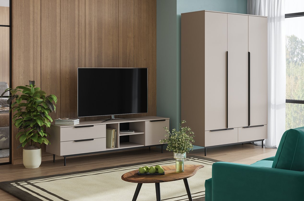 Tủ Tivi Kvelen – 2 Cà Phê Sữa đem đến cảm giác nhẹ nhàng và trang nhã cho phòng khách. Sắc cà phê sữa trung tính mang lại sự ấm áp tinh tế, giúp không gian trở nên sáng sủa mà không gây đơn điệu. Đây là lựa chọn lý tưởng cho các căn hộ muốn giữ vẻ hiện đại nhưng vẫn đảm bảo độ mềm mại trong tổng thể.