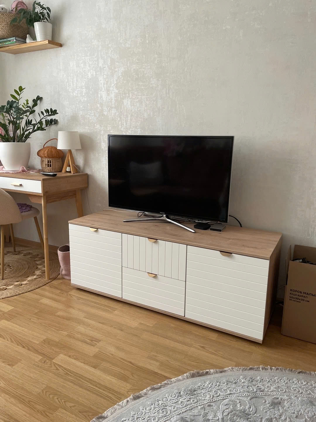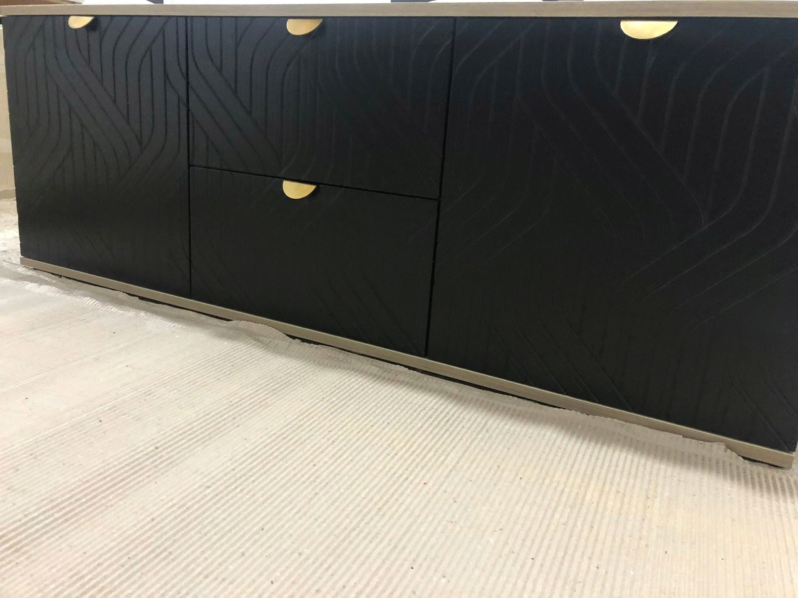 Với kích thước 139×50×53 cm, tủ phù hợp nhiều kiểu không gian từ phòng khách lớn đến nhỏ. Hai cánh bên ngoài mở vào ngăn kệ rộng rãi, thuận tiện cho việc đặt đầu thu, router hoặc các phụ kiện gia đình. Hai ngăn kéo giữa giúp tổ chức đồ đạc gọn gàng. Hoa văn trang trí tinh tế trên mặt cánh tạo hiệu ứng nhẹ nhàng, mang lại điểm nhấn không quá nổi bật nhưng rất đẹp mắt. Màu Xanh Dương Nhạt mang đến sự mát mẻ và thanh thoát, phù hợp với những ai yêu sự trẻ trung.