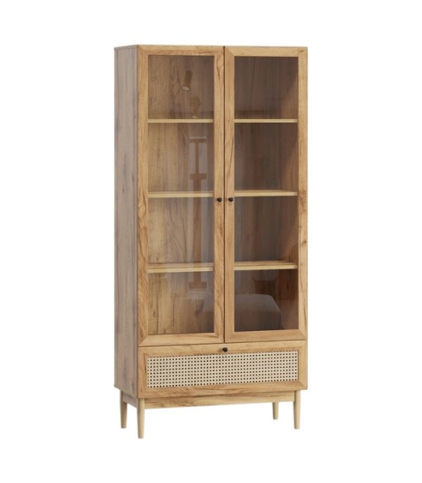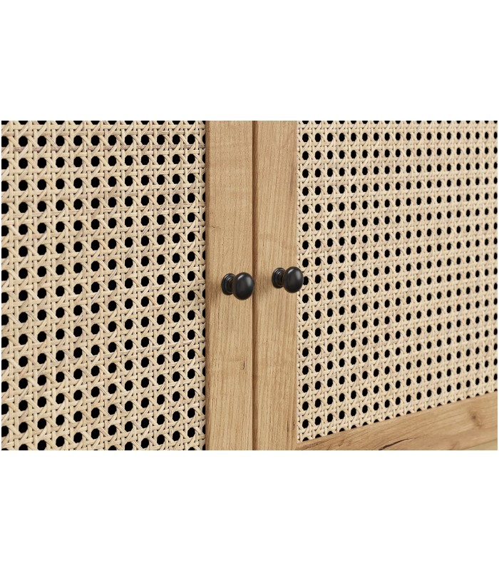 Sản phẩm nổi bật với vân gỗ tự nhiên kết hợp chi tiết lưới mắt cáo, mang đến vẻ ấm áp, gần gũi nhưng vẫn sang trọng. Tủ được chế tác từ gỗ MDF dày 17mm phủ Melamine chống ẩm, bề mặt mịn màng, chống trầy xước nhẹ và dễ vệ sinh. Các cạnh dán chỉ PVC tỉ mỉ bởi thợ lành nghề, tăng độ bền và hoàn thiện tinh xảo cho tổng thể.
