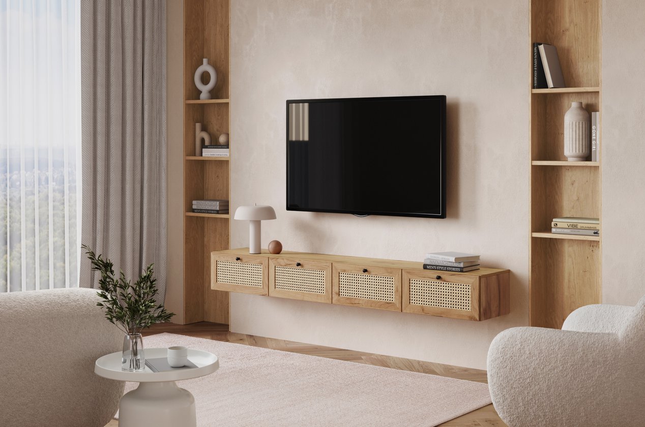 Mang vẻ thanh thoát và hiện đại, Tủ Tivi Roshal Wood Vân Gỗ – 6 là giải pháp treo tường lý tưởng, giúp tối ưu không gian sống mà vẫn giữ nét tinh tế cho phòng khách hoặc phòng giải trí. Với kích thước 200x35x25 cm, chiếc tủ sở hữu dáng dài, thanh mảnh, tạo cảm giác nhẹ nhàng nhưng vẫn sang trọng.
