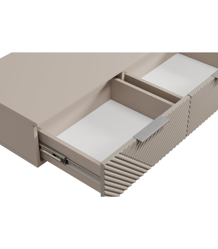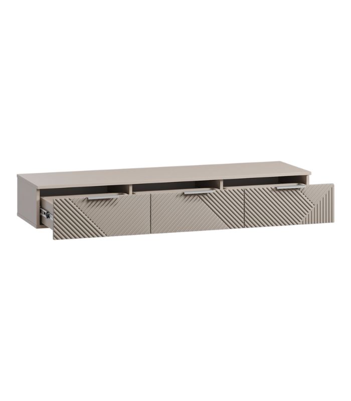 Kích thước 148x42x22 rất lý tưởng cho phòng khách chung cư hoặc nhà phố nhỏ. Tủ sở hữu 3 ngăn kéo rộng rãi, phù hợp cất đồ công nghệ, giấy tờ hoặc phụ kiện trang trí. Ray trượt êm giúp thao tác nhẹ nhàng, đóng mở không gây tiếng động mạnh. Tone Cà Phê Sữa mang cảm giác ấm và sang, giúp không gian trở nên tròn đầy, hài hòa. Thiết kế đơn giản nhưng hiện đại, phù hợp với sofa màu kem, nâu nhạt, be hoặc xám.