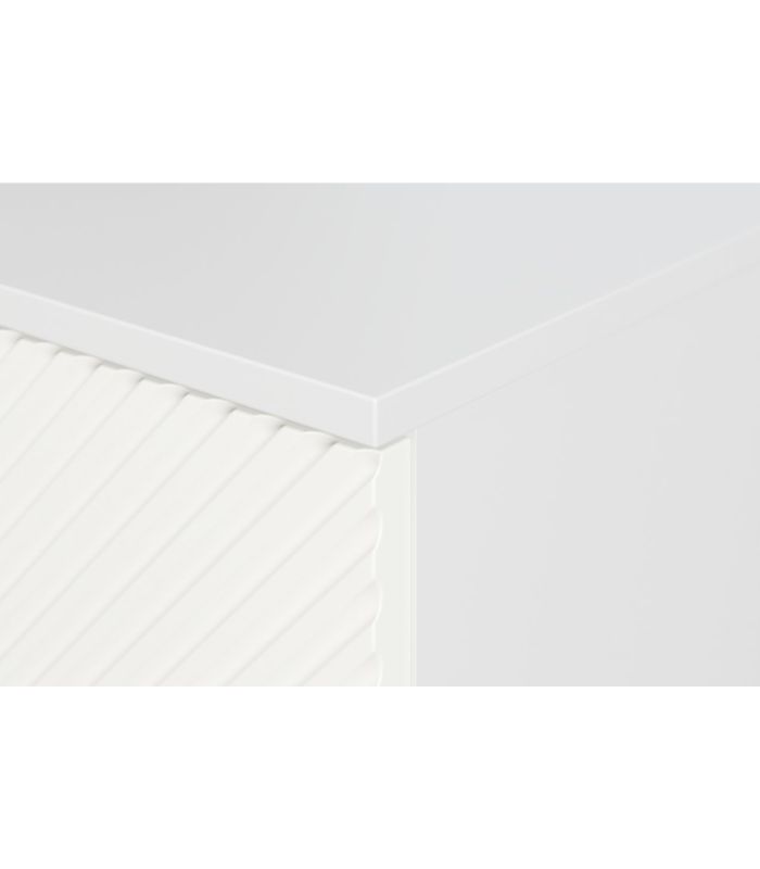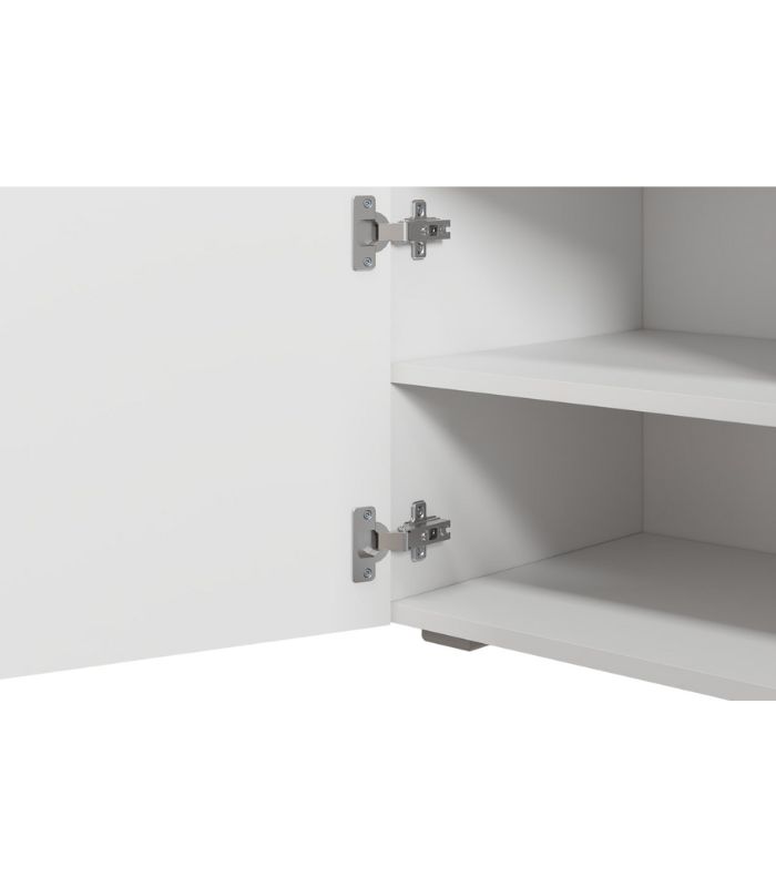 Tủ Tivi Shelton màu Trắng mang đến vẻ đẹp thanh lịch, tinh giản và sáng bừng không gian phòng khách. Chất liệu MDF phủ melamine chống ẩm giúp tủ bền hơn, hạn chế cong vênh và chống trầy xước tốt. Cánh tủ phủ PU 1 mặt đảm bảo bề mặt nhẵn mịn, giữ màu lâu và dễ vệ sinh.