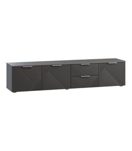 Kích thước 197x42x44 giúp tủ phù hợp với nhiều kiểu phòng khách hiện đại. Thiết kế tủ gồm 4 cánh mở, được chia bố cục hợp lý cho nhiều mục đích lưu trữ. Cánh số 1, 2 và 4 bên trong là các ngăn kệ rộng rãi, đựng loa nhỏ, sách, router hoặc đồ trang trí. Riêng cánh số 3 chia thành 2 ngăn kéo, tiện để điều khiển TV, dây cáp, tài liệu hoặc các vật dụng linh tinh. Kết cấu tủ chắc chắn, giúp đặt được tivi từ 55–75 inch mà vẫn đảm bảo an toàn. Bề mặt Trắng tinh khiết giúp không gian như mở rộng, tạo cảm giác thoáng và sạch. Form dáng vuông vắn và hiện đại dễ kết hợp với sofa, bàn trà hoặc kệ decor.