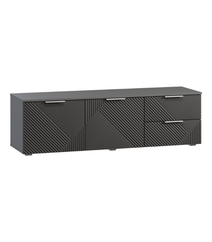 Tủ Tivi Shelton màu Xám Chì đem lại nét đẹp hiện đại, sang trọng và có chiều sâu cho không gian. MDF phủ melamine chống ẩm giúp tủ bền, chống phồng rộp và chống trầy tốt. Cánh phủ PU 1 mặt tạo bề mặt mịn, giữ màu ổn định và dễ vệ sinh.