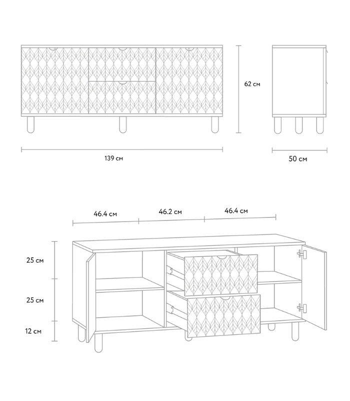 Các chi tiết được hoàn thiện tỉ mỉ, từ tay nắm vàng ánh kim cho đến họa tiết lá nhẹ nhàng trên mặt hộc kéo – dấu ấn đặc trưng của bộ sưu tập Tedjons. Cấu trúc bên trong chia ngăn hợp lý, tạo sự thuận tiện cho người dùng trong việc sắp xếp và cất giữ.