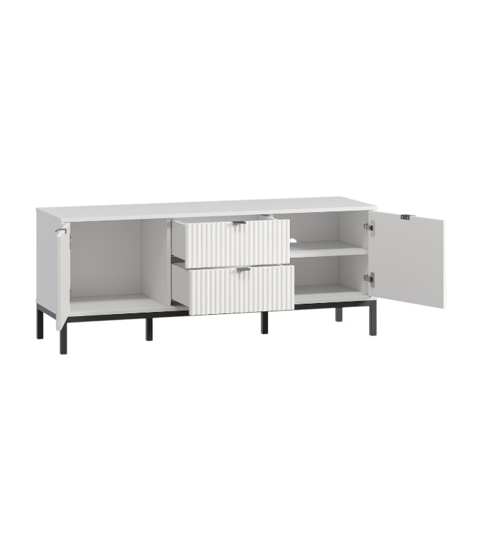 Với kích thước 137x40x54 cm, tủ được thiết kế thông minh gồm 2 cánh mở bên trong 3 ngăn chứa đồ, kết hợp cùng 2 ngăn kéo, giúp bạn dễ dàng sắp xếp đồ dùng, phụ kiện và các thiết bị giải trí một cách ngăn nắp và khoa học, tối ưu không gian mà vẫn giữ sự gọn gàng.