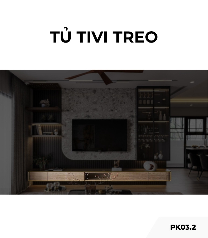 Tủ tivi treo PK03.2 không chỉ là nơi đặt thiết bị giải trí mà còn là điểm nhấn quan trọng góp phần hoàn thiện vẻ đẹp hiện đại, tinh tế cho không gian phòng khách.