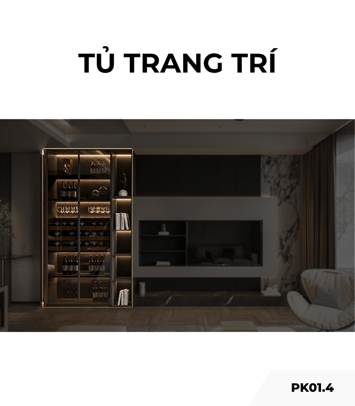 Khung nhôm chắc chắn giúp tăng độ bền và khả năng chịu lực, đồng thời hạn chế cong vênh trong quá trình sử dụng lâu dài. Đây là lựa chọn tối ưu cho những ai đề cao sự bền bỉ nhưng vẫn muốn giữ được nét sang trọng trong thiết kế nội thất. Ngoài ra, PK01.4 có thể dễ dàng kết hợp cùng kệ tivi, vách ốp hoặc các hệ tủ khác để tạo nên một tổng thể đồng bộ và hài hòa. Không chỉ đơn thuần là nơi lưu trữ, tủ còn đóng vai trò như một “tủ trưng bày nghệ thuật”, góp phần thể hiện phong cách sống và gu thẩm mỹ riêng của gia chủ.