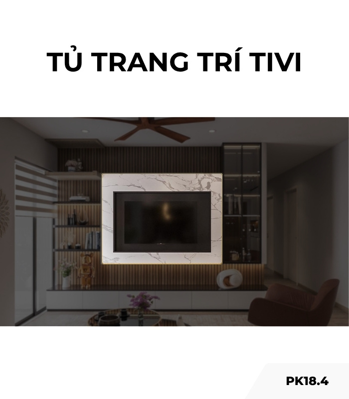 PK18.4 không đơn thuần là một chi tiết trang trí, mà là yếu tố định hình thẩm mỹ cho toàn bộ khu vực phòng khách – nơi tivi không chỉ để sử dụng mà còn trở thành điểm nhấn nổi bật trong không gian sống.
