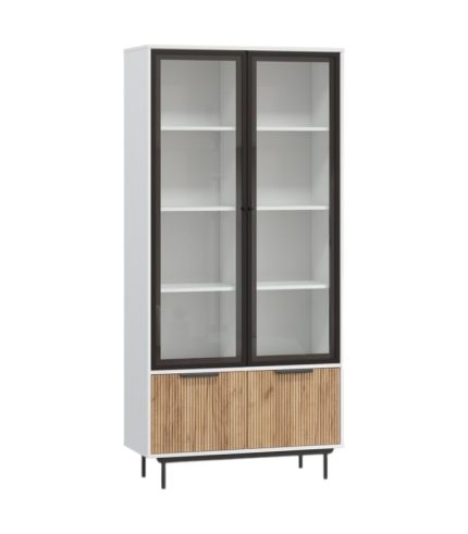 2 cánh kính trong suốt tạo hiệu ứng mở, giúp trưng bày sách, ly tách hay phụ kiện trang trí trở nên nổi bật hơn. Bên trong chia thành 8 ngăn rộng rãi, mang đến không gian lưu trữ khoa học và tinh gọn. Khoang tủ dưới với 2 cánh lam vân gỗ cùng 2 ngăn nhỏ giúp cất giữ vật dụng kín đáo, tăng tính tiện dụng mà vẫn giữ được sự thẩm mỹ.