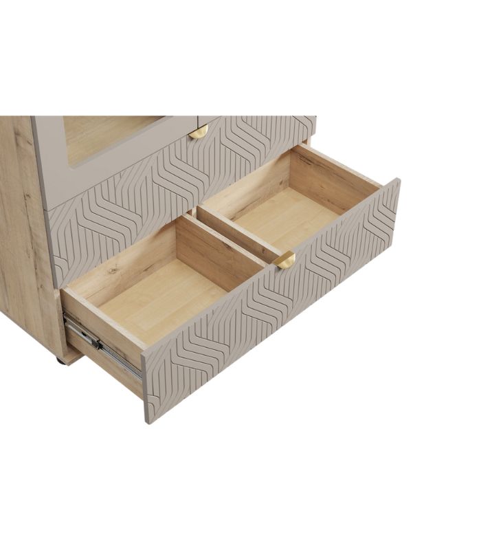 Tủ Trưng Bày Mont Blanc Fancy Cà Phê Sữa mang lại cảm giác ấm áp và thanh lịch cho không gian sống. Vật liệu MDF phủ melamine chống ẩm giúp tủ bền bỉ và ít cong vênh theo thời gian. Cánh tủ sơn PU 1 mặt tạo độ mịn, bóng nhẹ, tăng tính sang trọng cho sản phẩm.