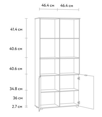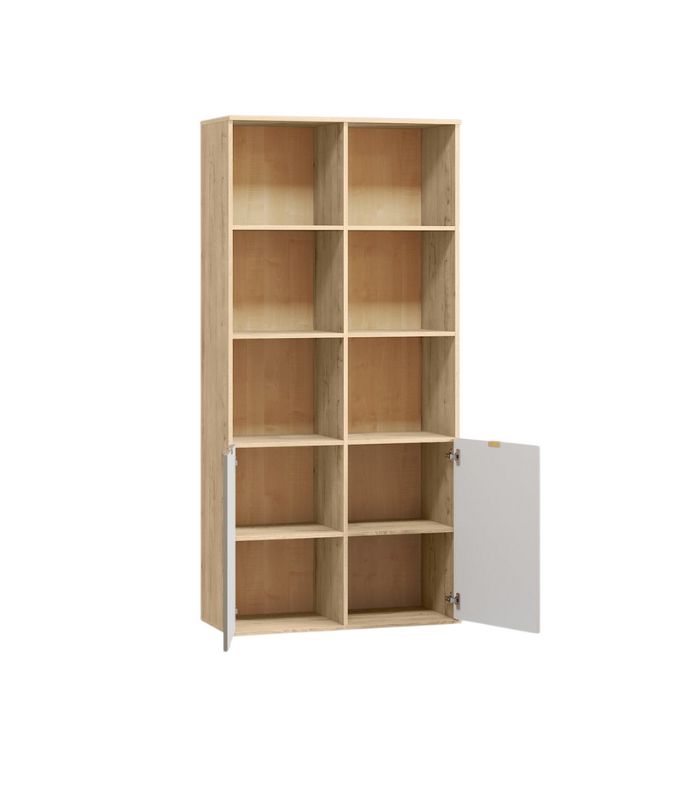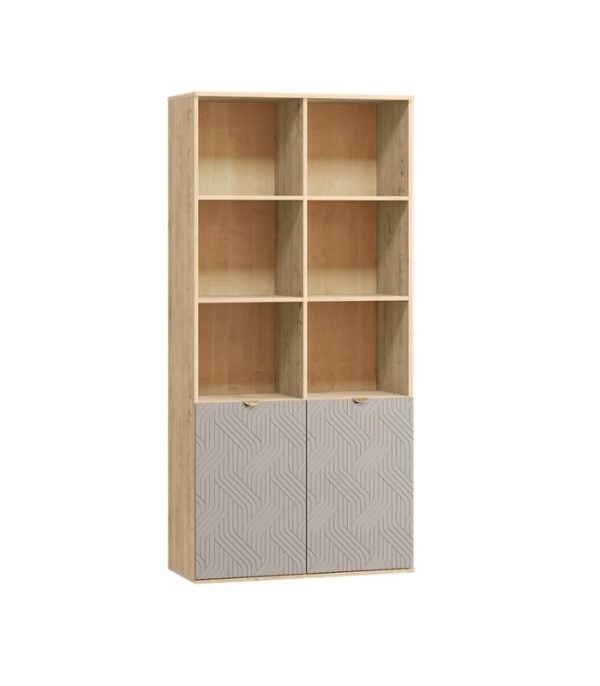 Kích thước 93×40×196 cm vừa vặn cho nhiều diện tích phòng. Phần trên gồm các ngăn kệ mở, rất lý tưởng để trưng bày sách, bình gốm, cây mini hoặc phụ kiện trang trí. Không gian mở giúp tổng thể trông thoáng và hiện đại hơn. Phần dưới có hai cánh tủ, bên trong là các ngăn kệ tiện dụng cho việc lưu trữ.