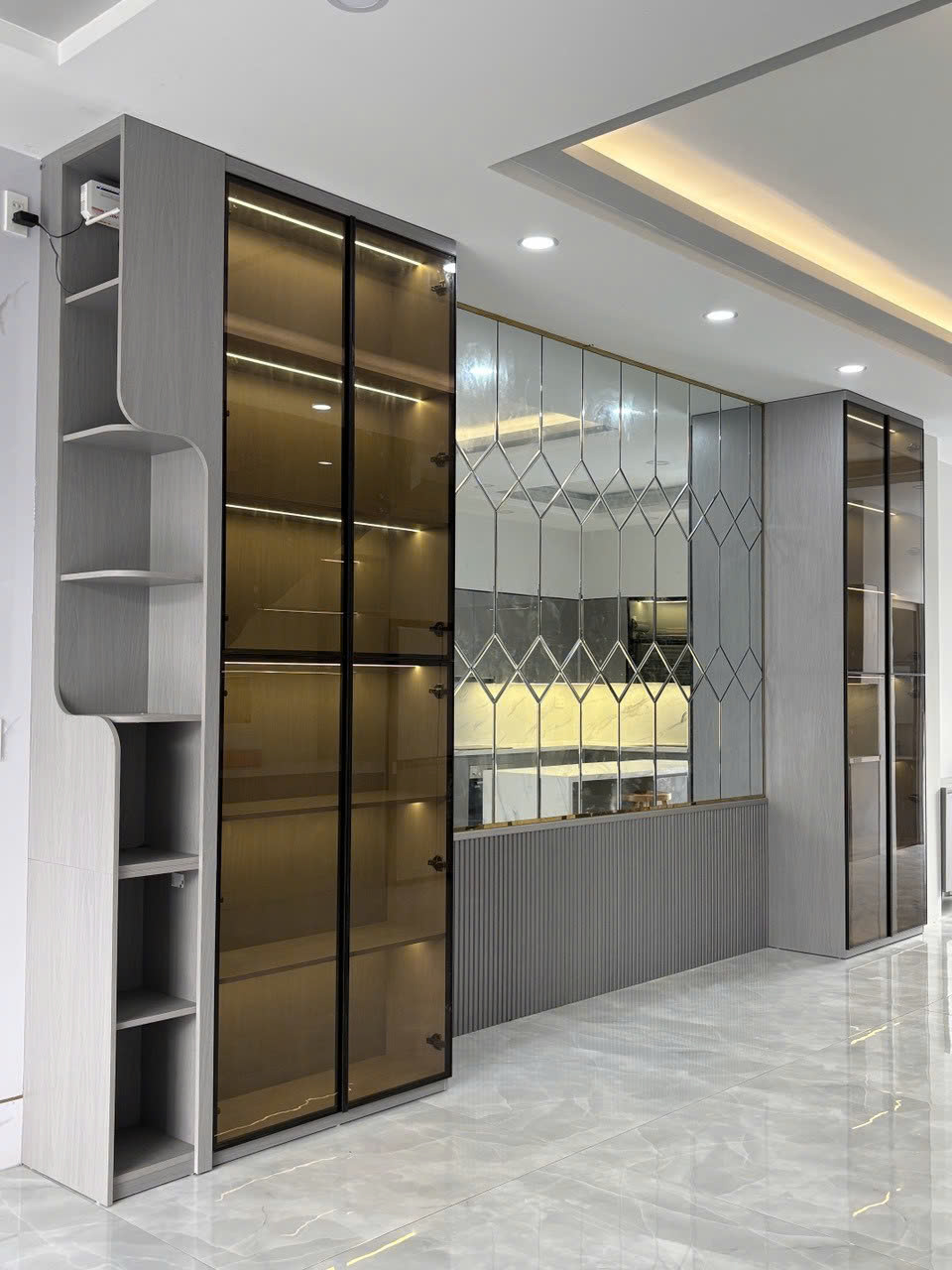 Tủ thiết kế đơn giản nhưng rất tinh tế, trưng bày đồ nhìn gọn gàng hơn hẳn. Đội thi công làm việc nhanh, hỗ trợ khách rất nhiệt tình.