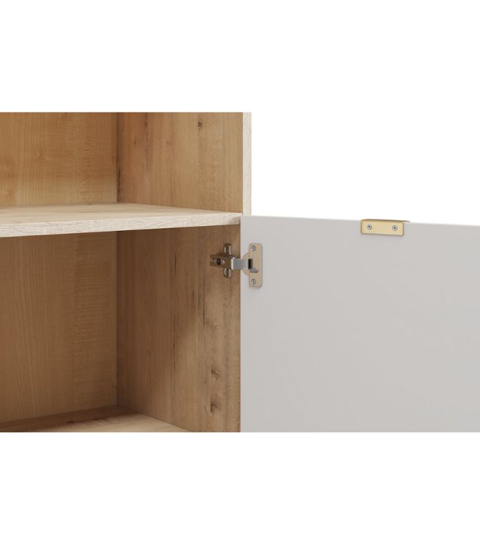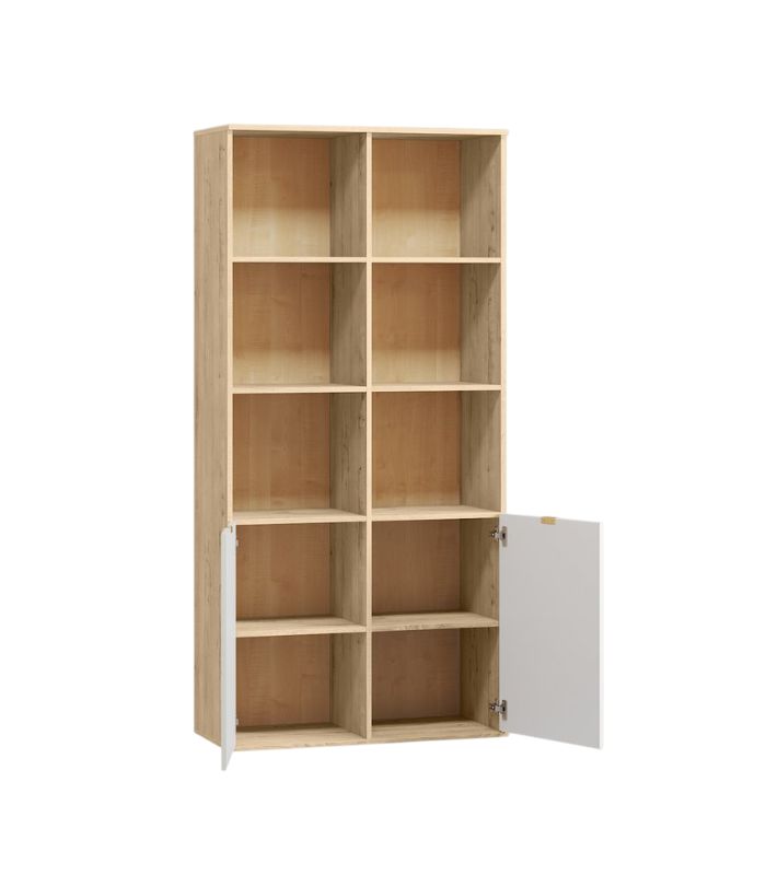 Kích thước 93×40×196 cm phù hợp cả căn hộ diện tích nhỏ lẫn nhà phố rộng. Khu vực phía trên gồm nhiều ngăn kệ mở, cho phép trưng bày đồ decor, sách hoặc ly tách rất đẹp mắt. Thiết kế mở giúp không gian trở nên thông thoáng và hiện đại. Phần dưới gồm hai cánh tủ với các ngăn kệ bên trong, giúp giấu đồ gọn gàng và ngăn nắp.