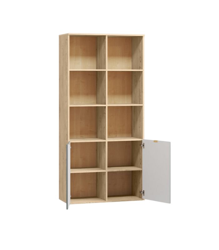 Với kích thước 93×40×196 cm, tủ phù hợp các không gian nhỏ đến vừa như phòng khách, phòng làm việc hoặc phòng ngủ lớn. Phần trên gồm nhiều tầng kệ mở, lý tưởng để trưng bày sách, sưu tầm hoặc các vật trang trí mang phong cách cá nhân. Bố cục kệ thoáng, dễ bố trí và nhìn vào rất bắt mắt. Phần dưới gồm hai cánh tủ, bên trong chia thành các ngăn kệ giúp cất đồ gọn gàng.