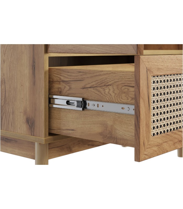 Sản phẩm được chế tác từ gỗ MDF dày 17mm phủ Melamine chống ẩm, bề mặt mịn màng, chống trầy xước nhẹ và dễ vệ sinh. Các cạnh dán chỉ PVC tỉ mỉ bởi thợ lành nghề, tăng độ bền và hoàn thiện tinh tế. Chân gỗ chắc chắn vừa nâng đỡ tổng thể, vừa nhấn mạnh dáng tủ thanh thoát, hài hòa với phong cách đặc trưng của bộ sưu tập Roshal Wood.