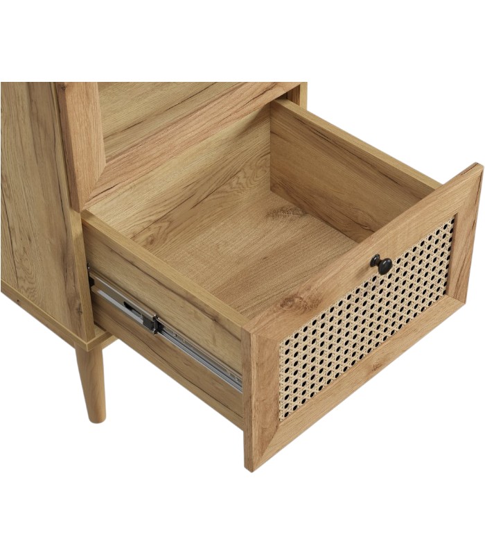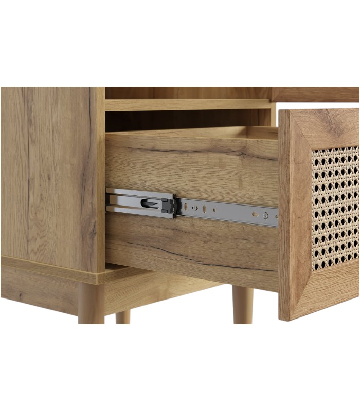 Sản phẩm được chế tác từ gỗ MDF dày 17mm phủ Melamine chống ẩm, bề mặt mịn màng, dễ vệ sinh và chống trầy xước nhẹ. Các cạnh dán chỉ PVC tỉ mỉ bởi thợ lành nghề, tăng độ bền và hoàn thiện tinh xảo. Chân gỗ chắc chắn nâng đỡ tủ, đồng thời nhấn mạnh dáng tủ thanh thoát, hài hòa với phong cách đặc trưng của bộ sưu tập Roshal Wood.