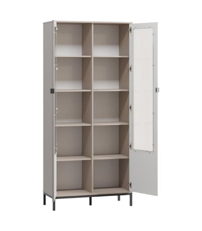 Với kích thước 93x40x205 cm, tủ được thiết kế 2 cánh lam kết hợp kính mở, bên trong gồm 10 ngăn lưu trữ và trưng bày rộng rãi. Thiết kế này giúp bạn sắp xếp sách, bộ sưu tập, vật dụng trang trí hay các món đồ yêu thích một cách khoa học và ngăn nắp, đồng thời tôn lên vẻ đẹp tinh tế của từng vật phẩm được trưng bày.